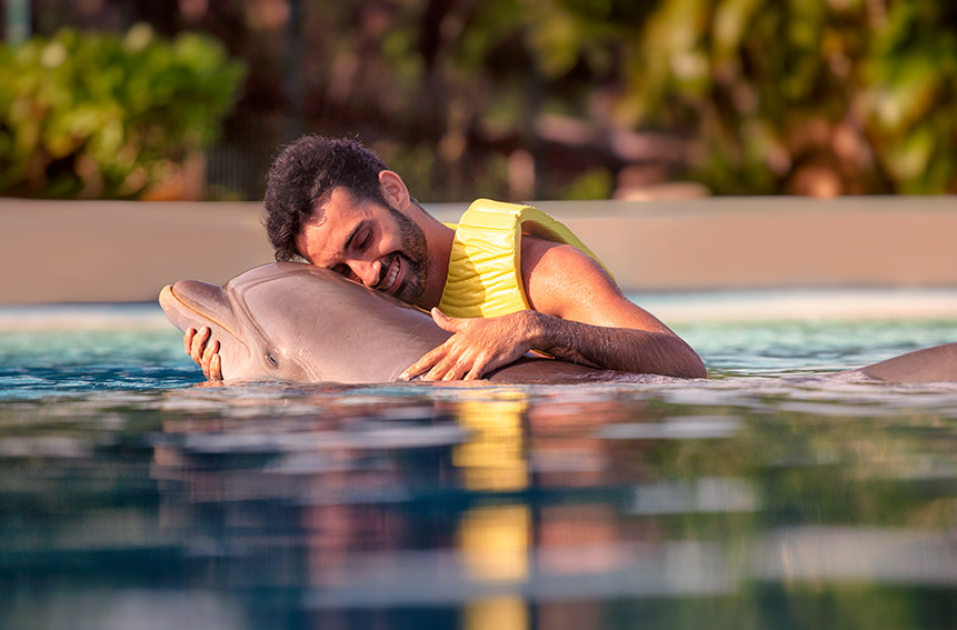 Nossos golfinhos são animais extremamente delicados, por essa razão pedimos a você não usar protetor solar.
