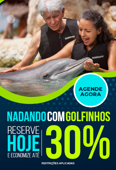 Nada com golfinhos em Cancún no Dolphinaris, situado do lado do parque aquático e de diversões Ventura Park Cancún, desenhado de...