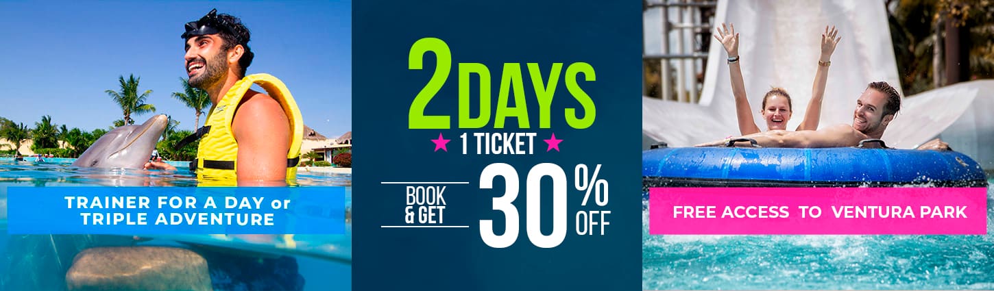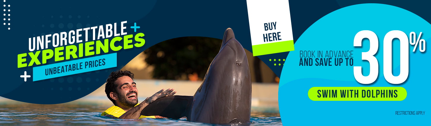 With Dolphinaris you choose how much you want to pay. Book your Swim With Dolphins program in Cancun & Riviera Maya* To get the Amusement and Water park in Cancun, Ventura Park, with all the fun and All Inclusive! (unlimited meals and non-alcoholic drinks). With this amazing promotion savings of up to 30% off.