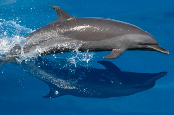 This dolphin is known for having black ‘lips’. It is actually a hybrid between the spinner and striped dolphin.