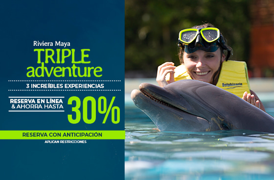 Vive la más completa aventura de nado con delfines en Dolphinaris Riviera Maya disfrutando tres excitantes y divertidas actividades por el precio...